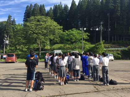 各宿舎から子どもたちが戻ってきました。退村式を終え、子どもたちはとても元気です。お世話になった地元の皆さんには、とても礼儀正しい気持のいい生徒さんでしたと褒めていただきました。バスの中では、星を見たこと、魚をさばいたり、美味しいご飯を食べたことなど、楽しい話でいっぱいです。