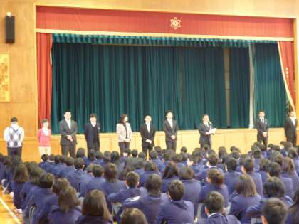 離任者紹介、着任式の時は静かに聞いていましたが、学年所属発