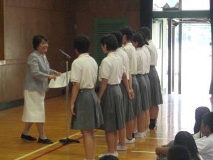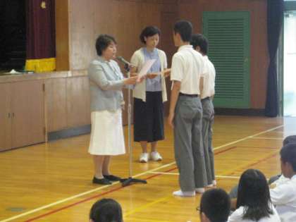 2学期の始業式の後、部活動の表彰を行ないました。部活動や勉強、地域での活動と、それぞれがんばってくれたことと思います。