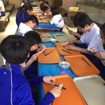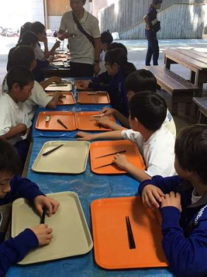 はし作り体験を行いました。今日の昼食は、自分で作ったおはしで食べます。楽しみです。