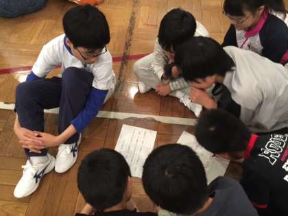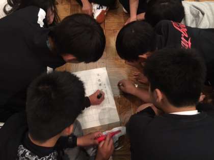 いろいろなジャンルの問題にチャレンジしました。最初は、漢字を答える問題です。みんな真剣ですねー。