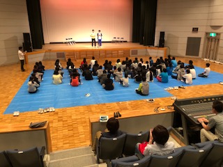 夕食後、予定を変更してレクリエーション大会を公民館で行いました。