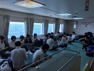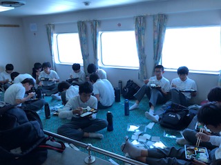 3日目の昼食はフェリー内でお弁当です。今のところ船酔いもなく、しっかり食べれています。