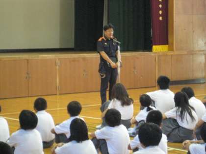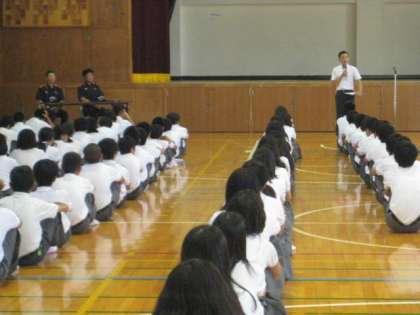 その後、体育館に移動し、北消防署の方から講評と講話をしていただきました。
