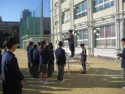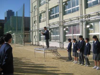 次に生徒会役員の引継ぎとして、前期生徒議会を代表して会長から離任のあいさつがあり、後期生徒議会を代表して会長から就任のあいさつがありました。