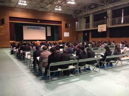11月29日(木)、14時から平成30年度 北区学校保健協議会の総会と保健大会を本校の体育館で開催しました。各学校の校園医様、薬剤師様、PTA様、学校関係者様等、多数の方々にお集まりいただき、ありがとうございました。
