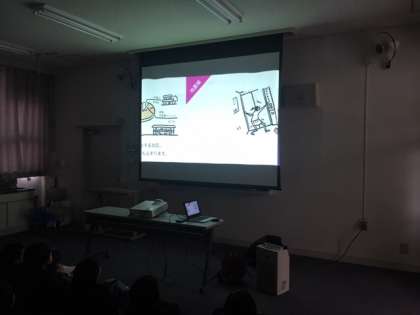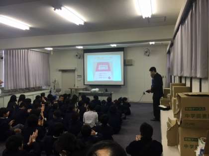 12月、1年生は、防災学習に取り組みました。1回目として、12月4日(火)、「自分たちの街について知る」ことをテーマに、北区役所の防災担当の方と大阪市危機管理室の方を講師としてお招きし、多目的室で防災学習会を実施しました。