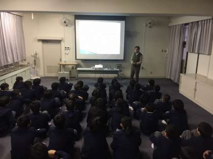 1月15日(火)6限、1年生は職業講話を行いました。進路担当者から、前半は職業観や卒業後の進路について、後半は高等学校の進学に必要な考え方(選択と責任)について説明をしました。