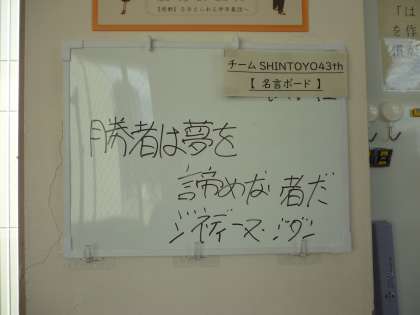 3年生廊下に掲示されている「名言ボード」 2学期はこの言葉からスタートです。