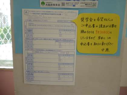 以前にもお知らせしましたが、3年生では現在奨学金の申込を受付しています。
