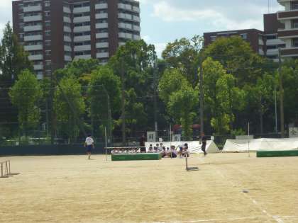 3年生体育は、陸上競技の授業です。走り高跳びの練習をしていました。