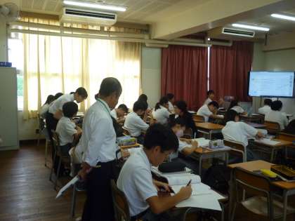 社会と数学では教え合ったり、復習をし、国語の授業では、パワーポイントで発表を行っていました。