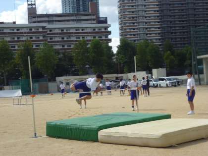 3年生が陸上競技(走り高跳び、ハードル走)に取り組んでいました。