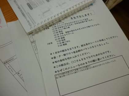 家庭科の時間では「〇〇さんをもてなすメニュー」を考えていました。