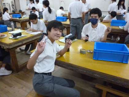 3年技術の授業では、金属加工の単元を学び、キーホルダーを作成しいます。
