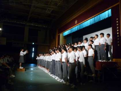 2年生は合唱です。長崎、広島にゆかりがある方の歌を通して、原爆後に人々が力強く前を向いて歩きだす姿を表現してくれました。