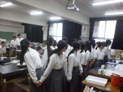 理科室を覗くと、生徒が手をつないで円になっていました。