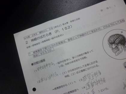 2年生理科の授業では「神経のはたらき」について学習しています。