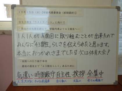 3年生の廊下に前期学級代表からのメッセージが掲載されていました。