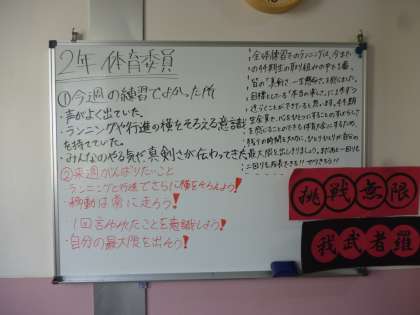以前、2年校舎の廊下にある体育委員からのメッセージを紹介いたしました。