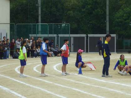 各クラスでタイムの速い人が縦割りでリレーを行います。