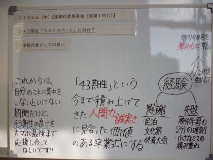 (左から、1組、2組、3組の学級代表からのメッセージです)