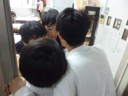 今日の給食の献立を確認していたり、友だち同士でわいわい話したりしていました。