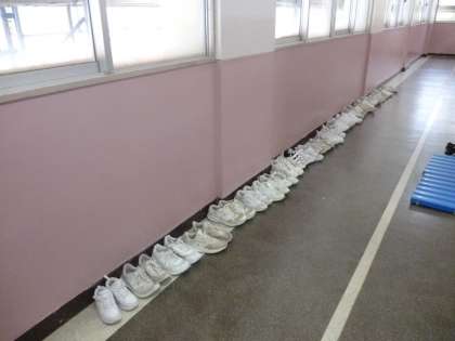廊下を見るとこのように靴がきれいに並べられていました。
