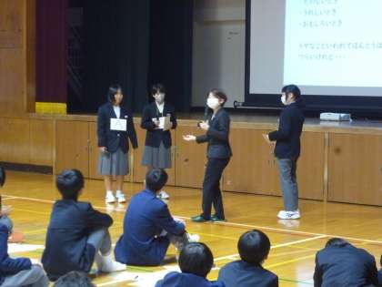 弁護士の方にお越しいただき、1・2年生を対象にいじめ予防授業を実施しました。
