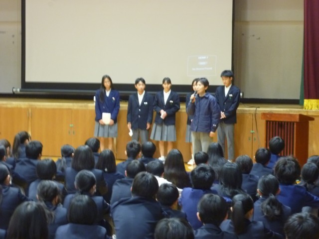 また、美化委員会からは校内美化について話があり、日本語だけでなく、中国語も事前に練習して、話をしてくれました。