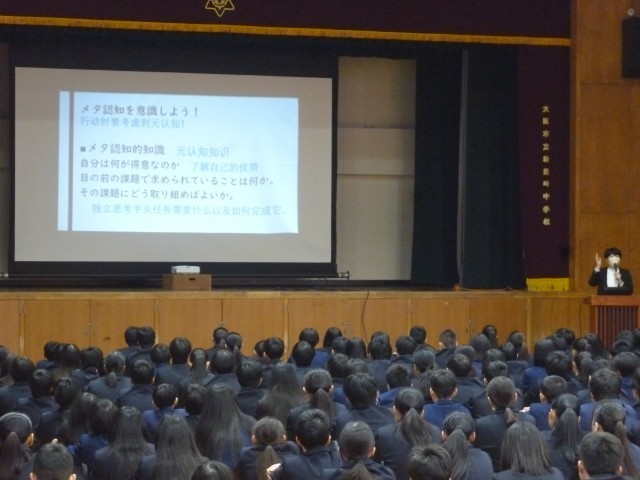 始業式では校長先生から「メタ認知を意識して3学期を過ごそう」とお話があり、生徒指導の先生からは「生活リズムを整えよう」とお話がありました。