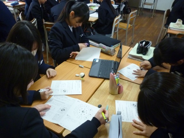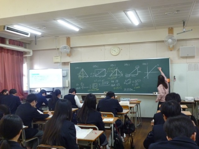 数学の授業では、演習に取り組んでいました。図形の問題、苦手な生徒もいるようですがみんな一生懸命取り組んでいました。