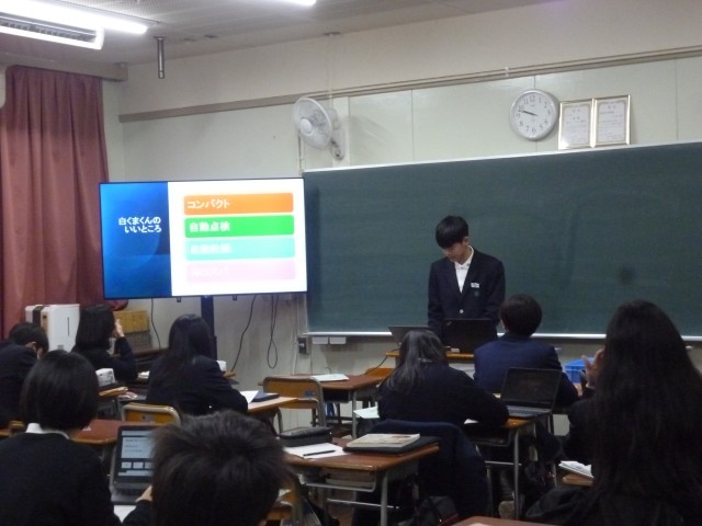 家庭科は、「一人暮らしするのに必要なもの(家電)」について調べ、発表していました。