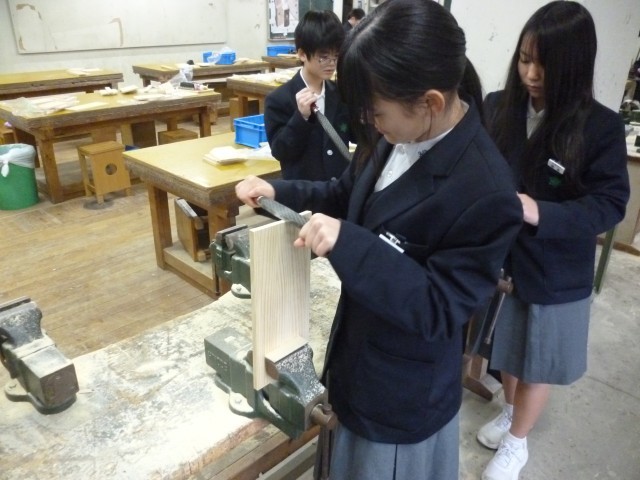 技術は、木工の授業でした。本棚を作成していました。