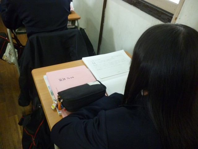 国語では、詩を読んだ感想をお互いに意見交換していました。