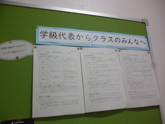 また、廊下には学級代表が話し合った内容が掲示されていました。