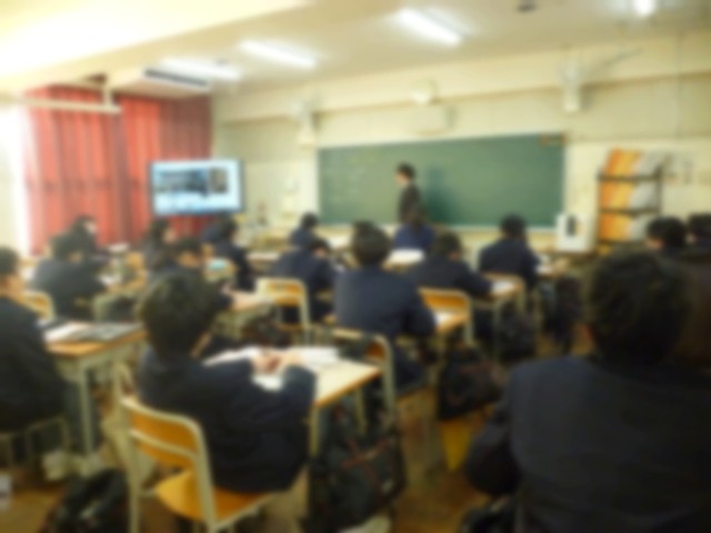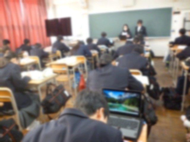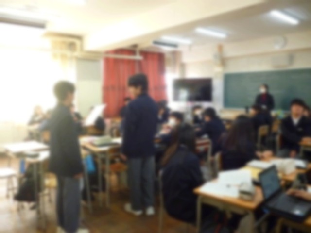 英語では、冬休みの思い出を発表し、周りの生徒が英語で質問をしていました。
