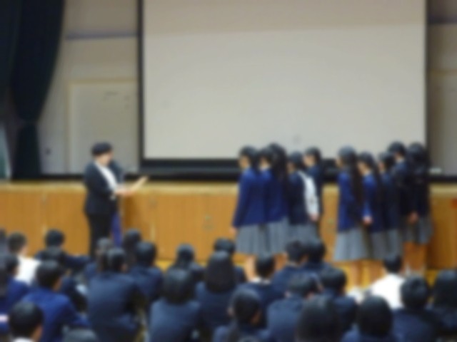 今日の全校集会ではバドミントン部の表彰がありました。また、「清潔週間」で年間通して素晴らしい結果を残した3-2、3-3の保健委員が表彰されました。