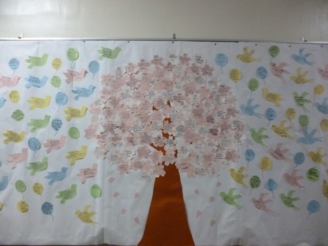 生徒会が中心となり、1・2年生から3年生の卒業に向けて書かれたメッセージが廊下に掲示されていました。