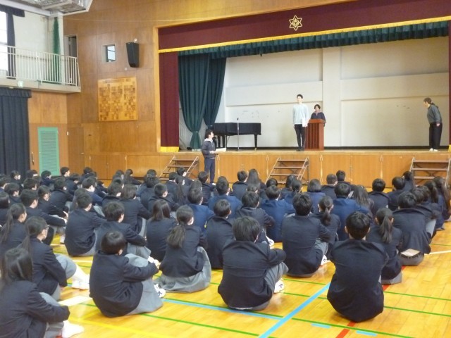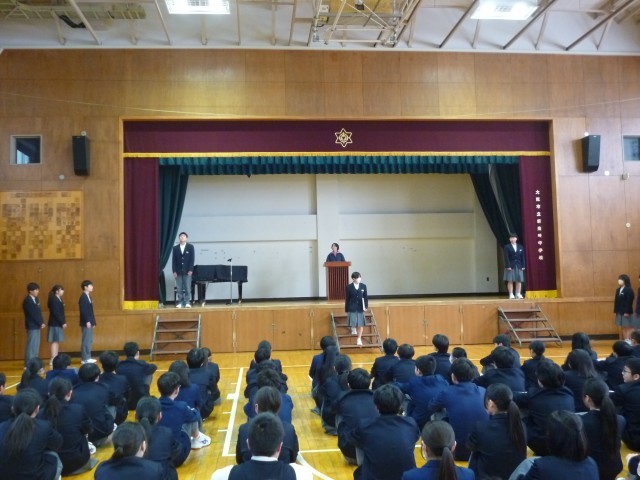 3年生は今日から練習を始めました。まずは、担任の先生が見本を見せてくれました。そのあと代表生徒が続いて練習しました。
