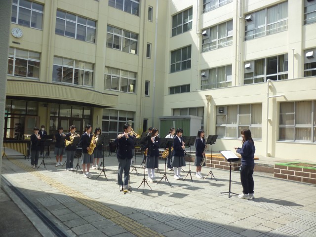 あたたかな日差しの中、音楽部が演奏をしてくれました。