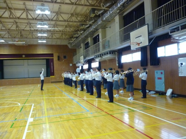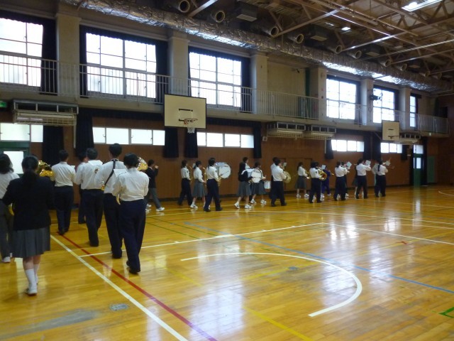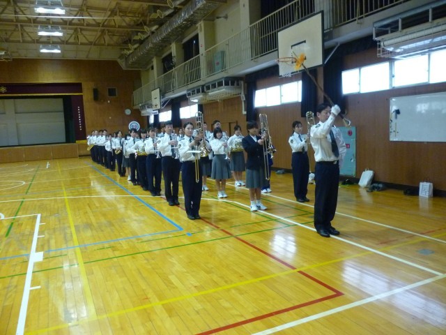 今日は、大阪府警音楽隊のみなさんが本校にお越しになり、体育館でパレードの練習を行いました。