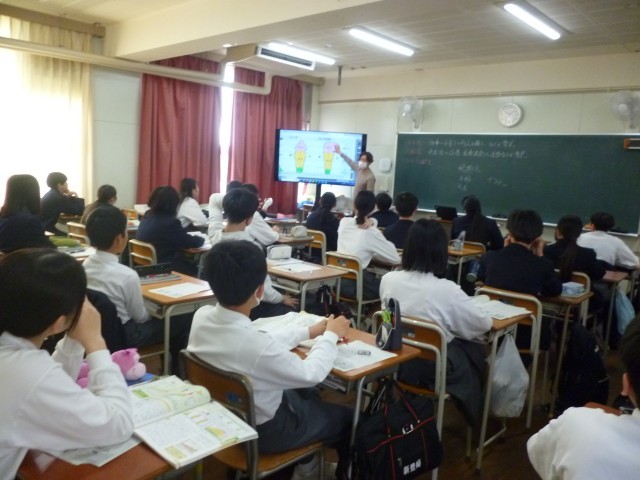 家庭科では、生徒が食品を6つの基礎食品群に分けていました。