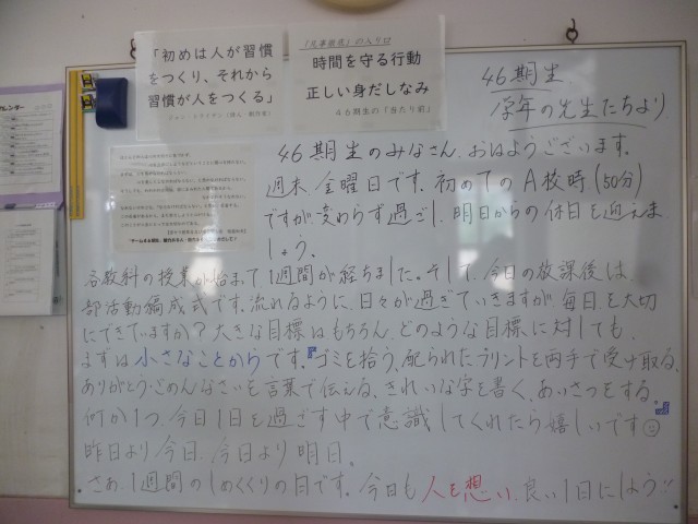 集会や学活などのお話やこのような掲示物から先生方はさまざまなメッセージを生徒のみなさんに発信しています。