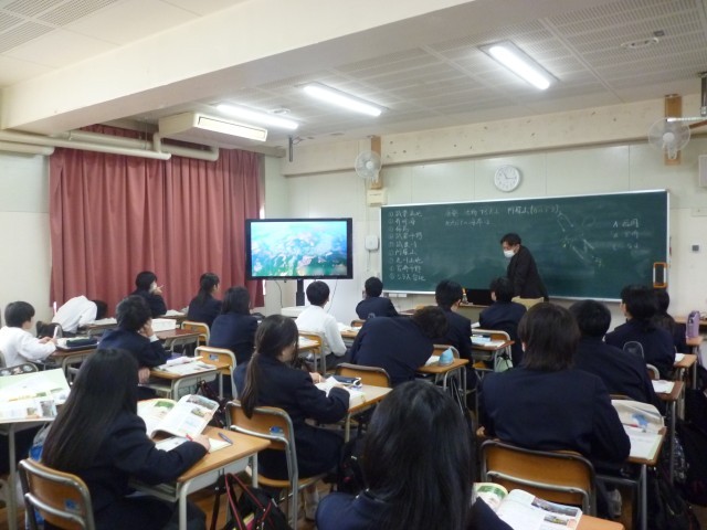 社会は、九州地方の地理を勉強していました。みんな熱心にノートをとっていました。