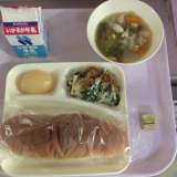 スープ煮、ほうれんそうのグラタン、白桃(缶)、バター、パン、牛乳となっております...