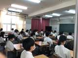 1年生の授業風景です。 3ヵ月ぶりの一斉授業です。 静かに授業を受けています。