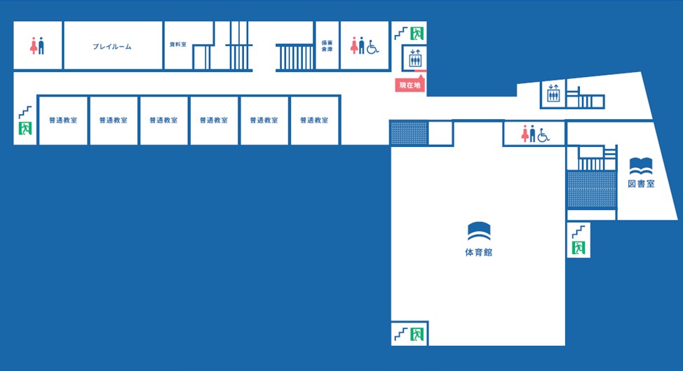 3階の西側には小学校低学年の普通教室とプレイルームがあります。プレイルームには、マットやブロックなどが設置されています。低学年を中心に利用することを想定しています。東側には2階から続く図書室と、体育館があります。体育館には上靴でそのまま入り、活動することができます。