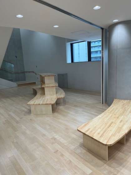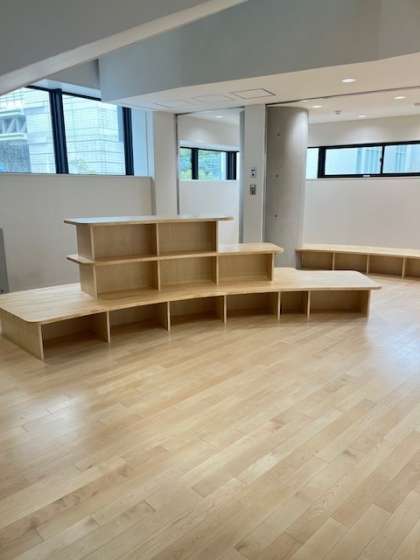 階と3階にわたり図書室がありますが、図書室から一歩出たところにもベンチ兼配架スペースがあります。