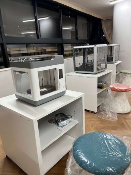 5階のパソコン教室2には3Dプリンタが5台設置されています。子どもたちの自由な発想が、形として表現できます。